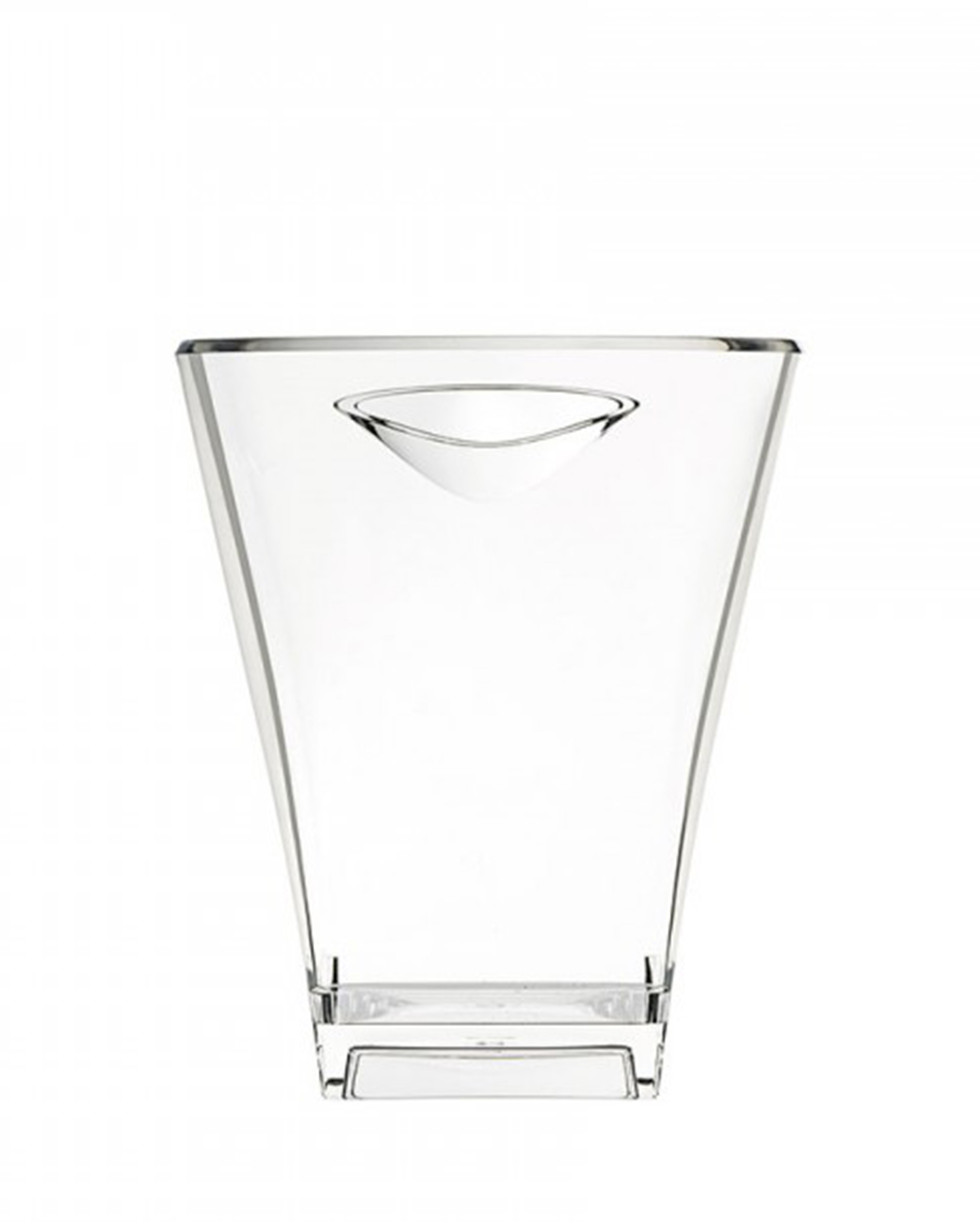 Keep your champagne or white wine cold. A modern, clear, round, acrylic champagne cooler for one bottle. An excellent product for summer parties. Convenient for other beverages as well.