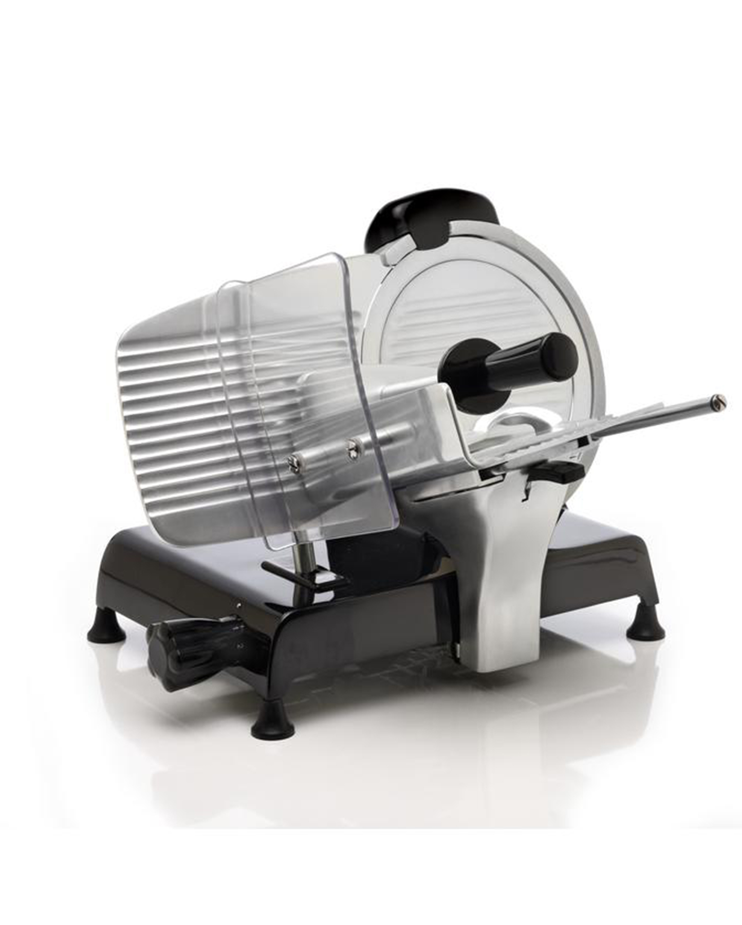 The steel blade ensures a perfect cut to make thin and even slices while reducing waste. The built-in sharpener enhances blade efficiency and durability. The slice deflector, blade cover, and meat table can be removed easily to ensure quick and accurate cleaning operations.