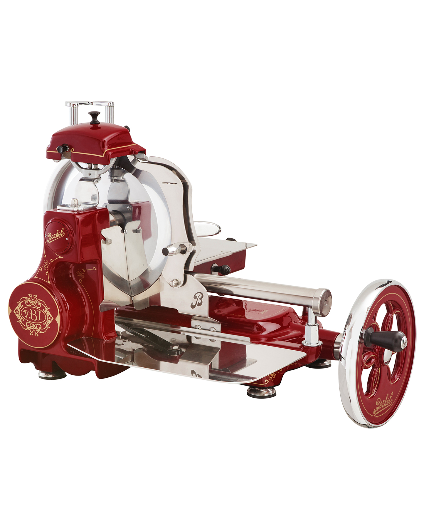 Tribute is inspired by one of the most renowned Berkel models. The flower flywheel, gold colour decors, and elegant design make this meat slicer a true tribute to tradition. This artisanal machine is much appreciated by cuisine enthusiasts and those who know that the perfect cut is essential to maintain and enhance the quality of a product..