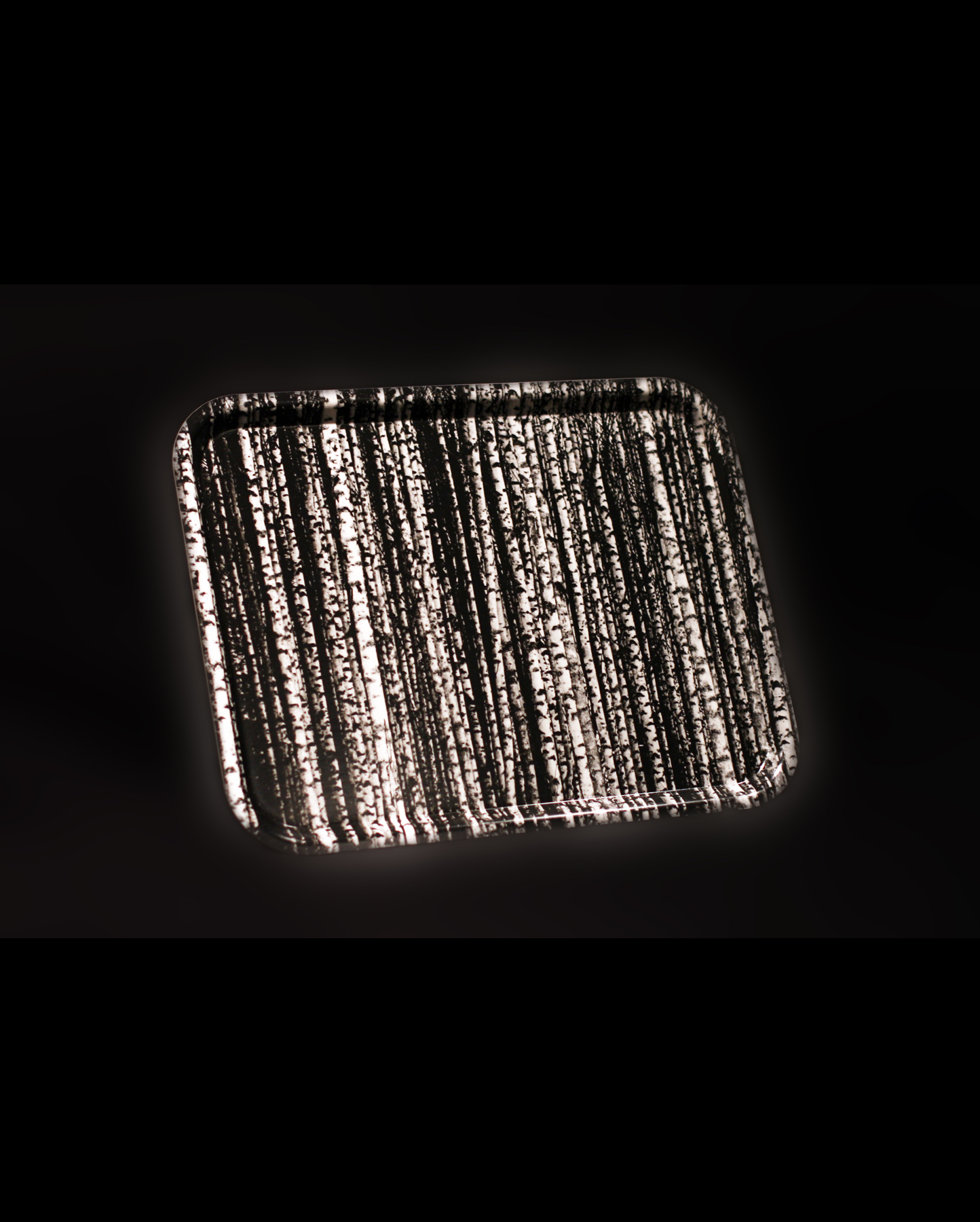 A beautiful, high quality standard sized tray made of Finnish birch, with a black and white forest print.