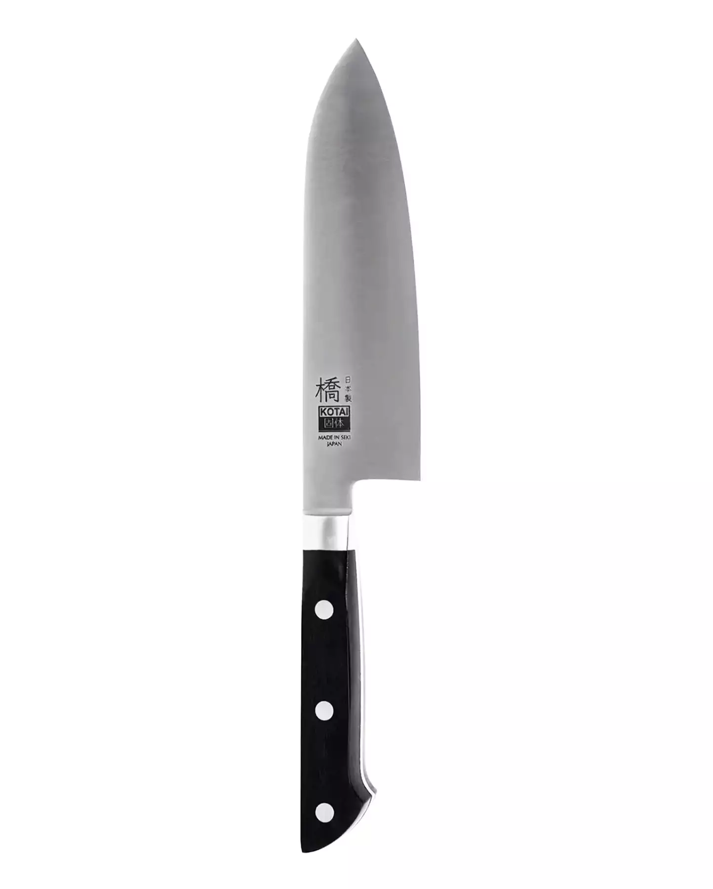 Klassinen perinteinen Kotain valmistama japanilainen Santoku-kokkiveitsi, jossa yhdistyy sekä japanilaisten että saksalaisten veitsien parhaat ominaisuudet. Kevyt, tarkka ja veitsenterävä kuin japanilainen veitsi, mutta ruostumaton, kestävä ja helppo teroittaa ja huoltaa kuin saksalainen veitsi.
