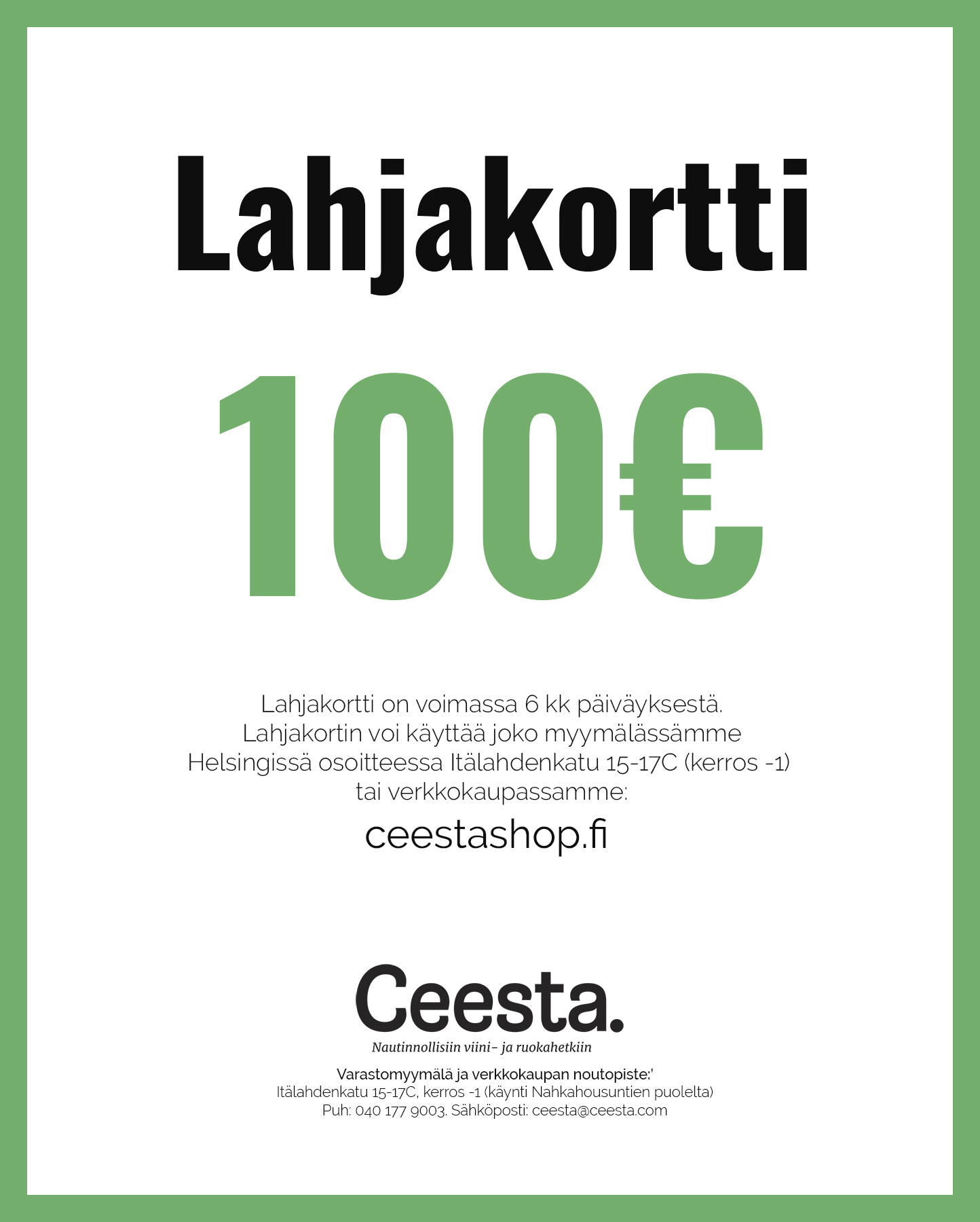 Lahjakortti 100 EUR. Ihana lahjaidea! Ilahduta lahjakortilla, niin lahjan saaja voi valita mieleisensä tuotteet!