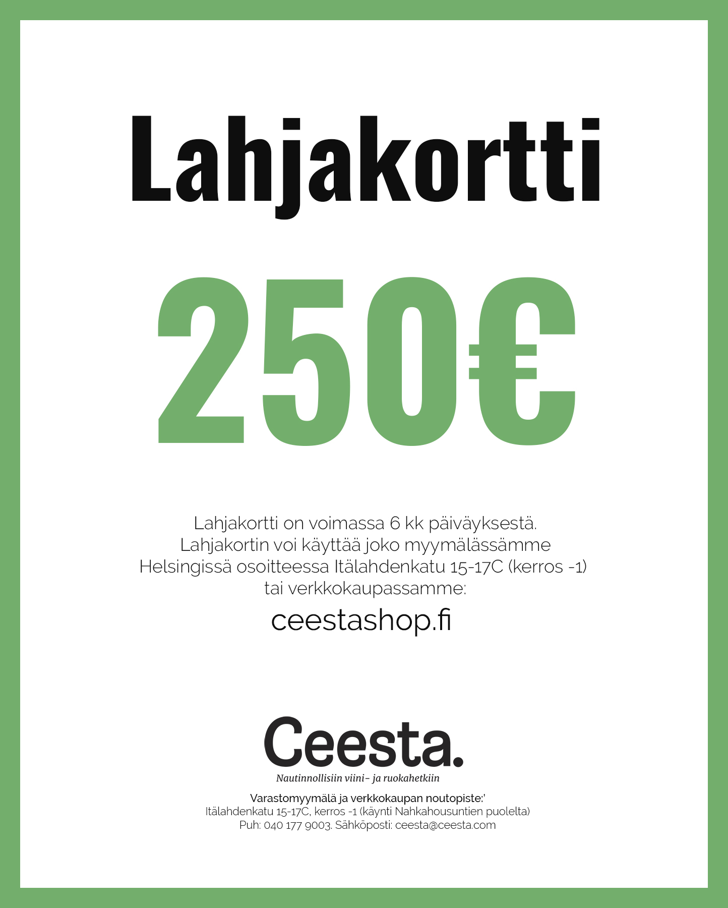 Lahjakortti 250 EUR. Ilahduta lahjakortilla, niin lahjan saaja voi valita mieleisensä tuotteet!