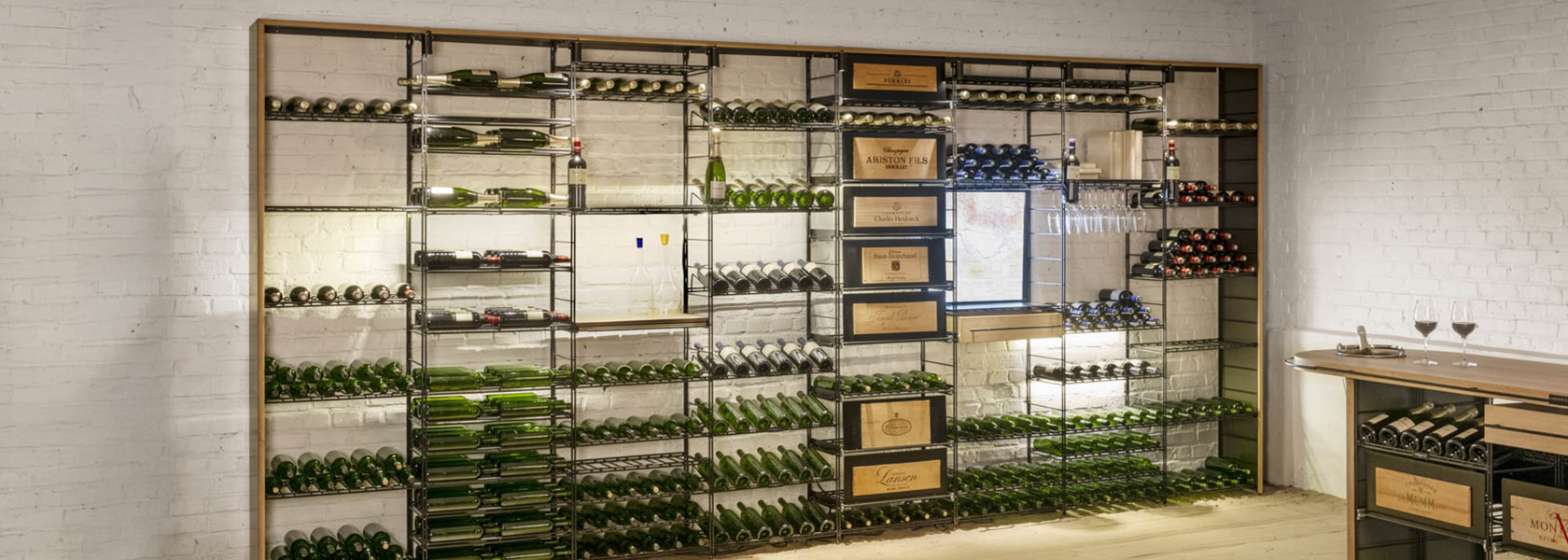 Valmiiden viinikellarin hyllyratkaisujen ja moduulien osalta vaihtoehtoja on runsaasti, ja ne voidaan valita tilan koon, tyylin ja säilytettävien viinien määrän mukaan. Laajasta valikoimastamme löydät hyllyratkaisuja muun muassa seuraavilta toimittajilta: Cavicase, L'Atelier du Vin, Qbic ja Wineracks of Sweden.