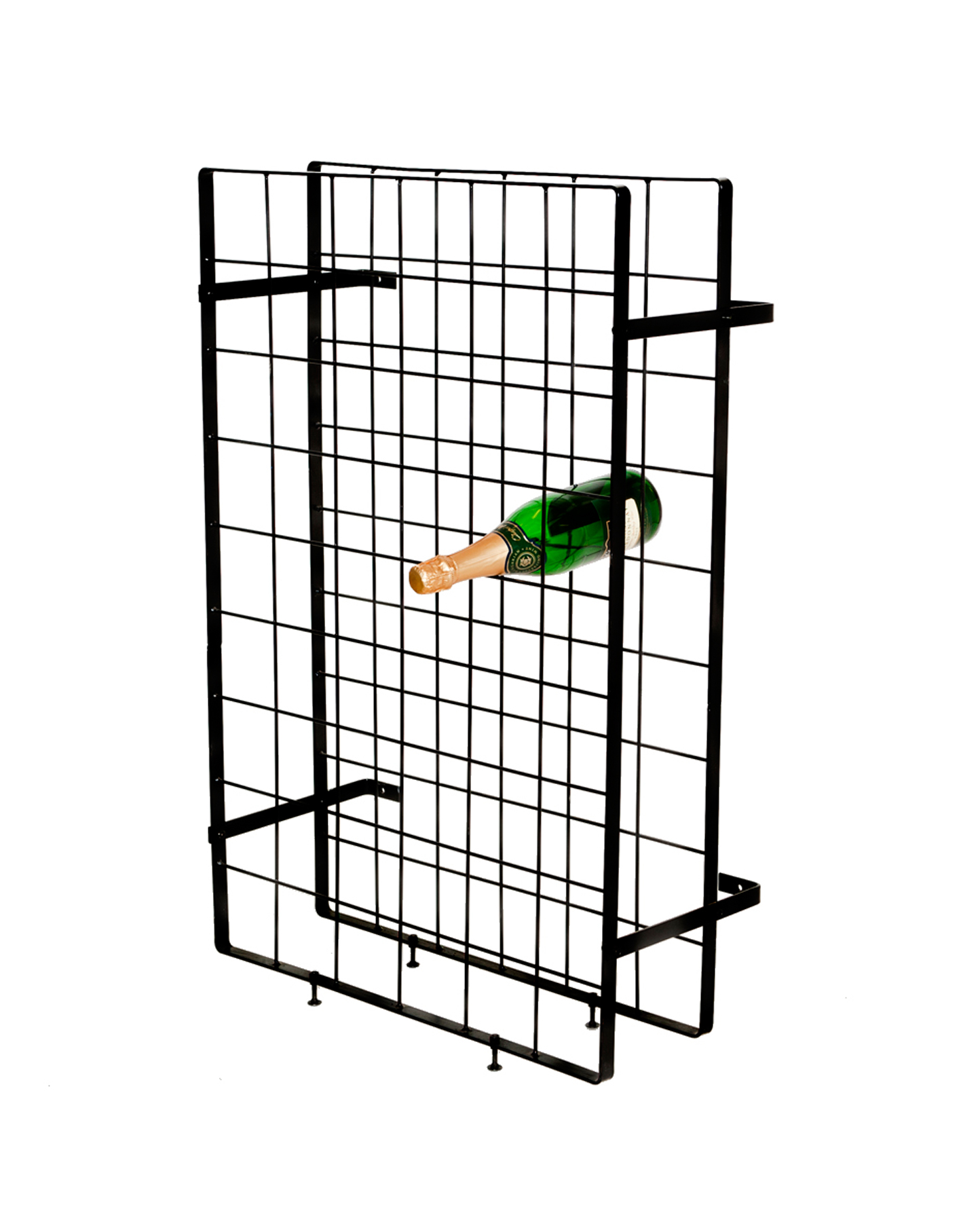 Tukeva ja tyylikäs metallinen viininpullonteline isompaankin viinikellariin. Korkealaatuinen teline koostuu kahdesta kehyksestä, jotka ovat kiinnettyinä toisiinsa kulmaraudoilla. Helppo asentaa. Teline kiinnitetään seinään kulmarautojen avulla mieluiten lattiasta ylöspäin.
