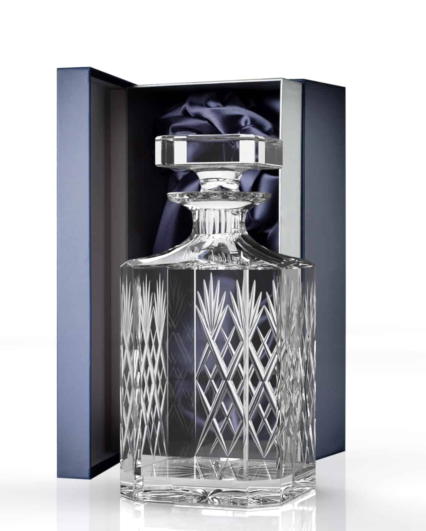 Lahjapakkaus, jossa upea kristallinen Skye-viskikarahvi. Kaunis hiottu perinteinen vanhan ajan viskikarahvi.