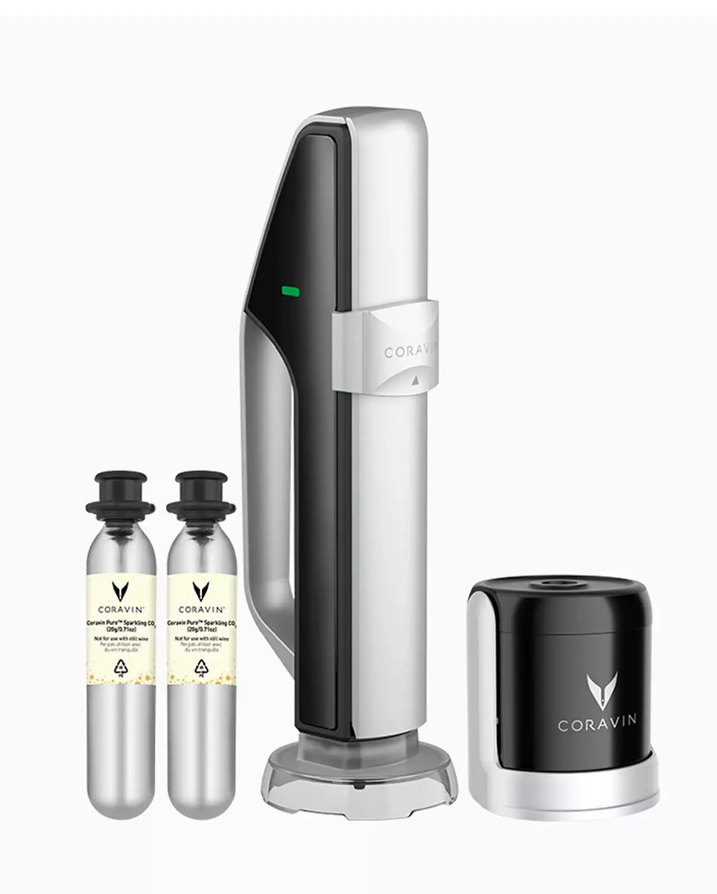 Coravin Sparkle-systemet håller champagne och mousserande vin friskt och bubbligt i upp till flera veckor efter att flaskan öppnats. Med hjälp av CO₂-gas bibehålls trycket i flaskan, vilket gör att vinet behåller sina bubblor och sin ursprungliga smak längre. Coravin Sparkle är enkel att använda och perfekt när du vill njuta av mousserande vin glas för glas.