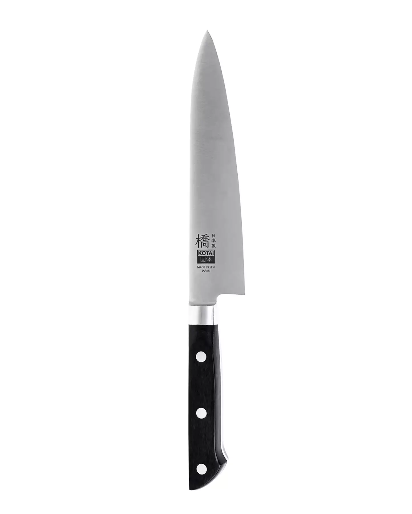 En vacker japansk Gyoto kockkniv från Hashi Classic-kollektionen från Kotai, som kombinerar de bästa egenskaperna hos både japanska och tyska knivar. Lätt, precis och rakbladsvass som en japansk kniv, men rostfri, hållbar och enkel att slipa och underhålla som en tysk kniv.