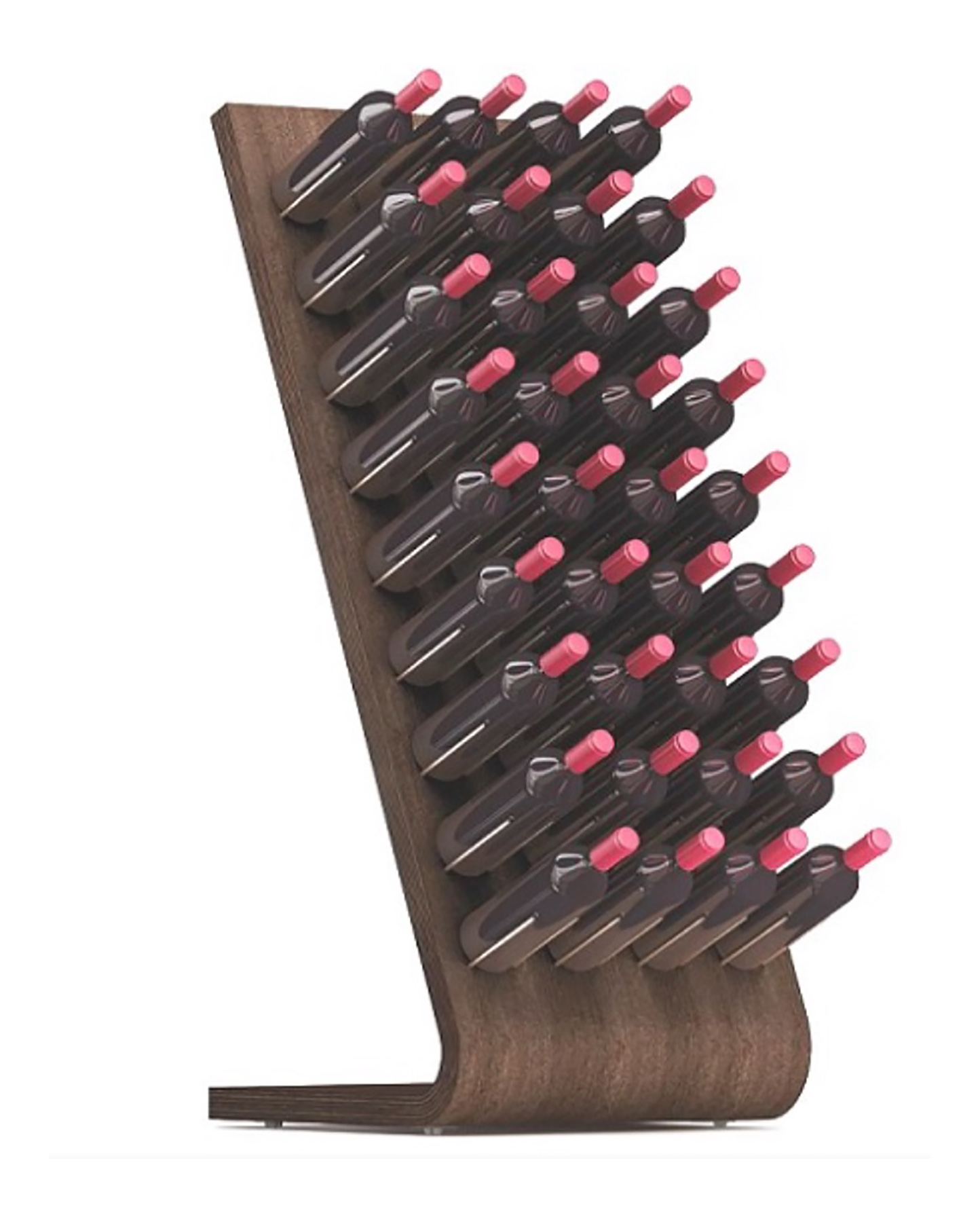 Underbart italienskt vinställ i trä för 36 flaskor. Flaskorna vilar på metallspikar. Lämplig som ett dekorativt element för hemmet eller offentliga utrymmen.
