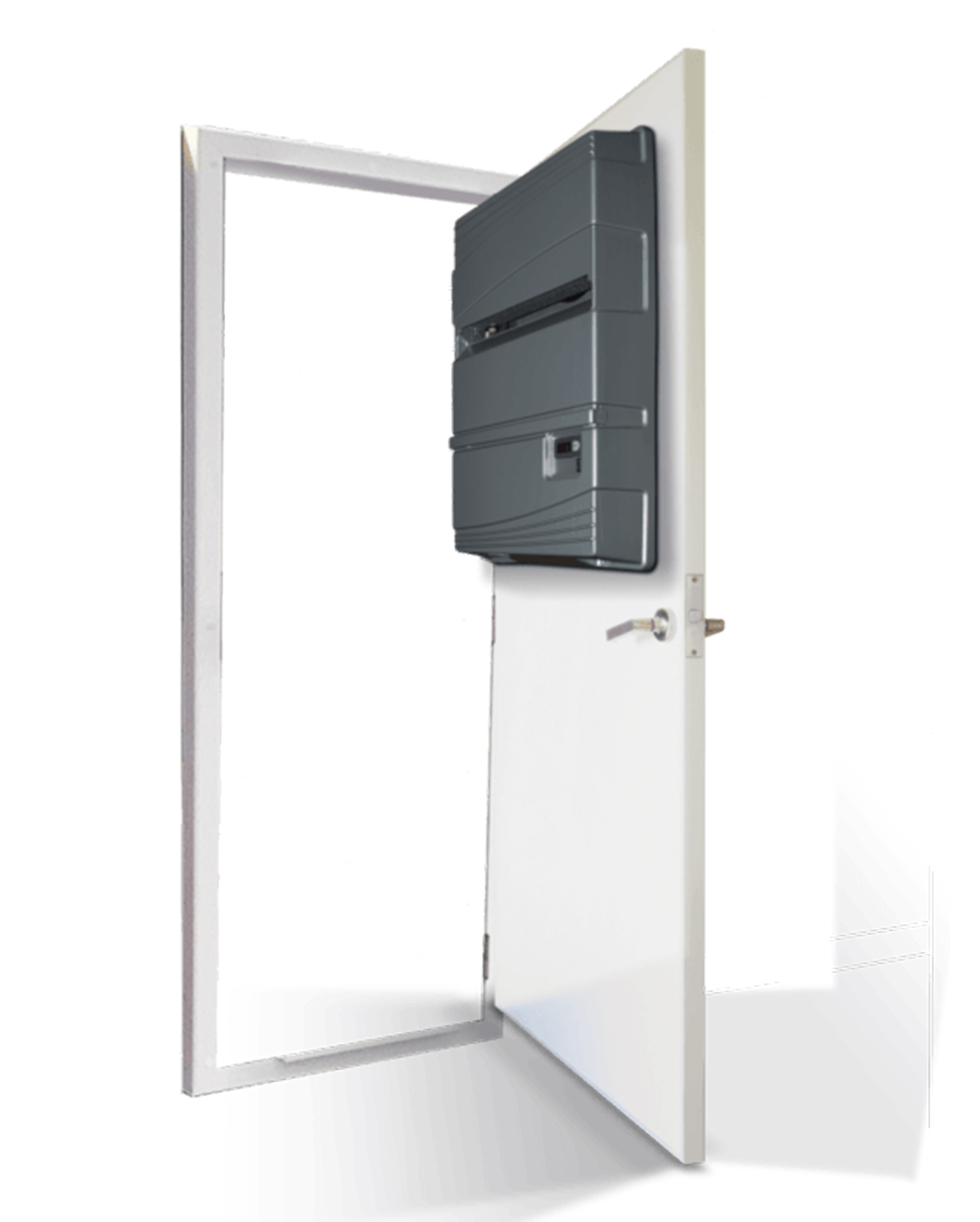 Denna integrerade lösning, som kombinerar en dörr och en inbyggd luftkonditionering, erbjuder många fördelar, särskilt dess diskreta. Denna lösning är lämplig för olika små vinkällare och vinrum, där väggutrymme inte är önskvärt eller inte möjligt att använda för kylutrustning. Winemaster PC15 kylanordning är lämplig för rum med en maximal storlek på 15m3.